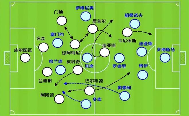 瓜帅之前用过的三边锋阵在面对西汉姆联时,应该会取得较好的效果。尤其是曼城的边后卫,无论是奥赖利还是努内斯,后插上的威胁都很大。