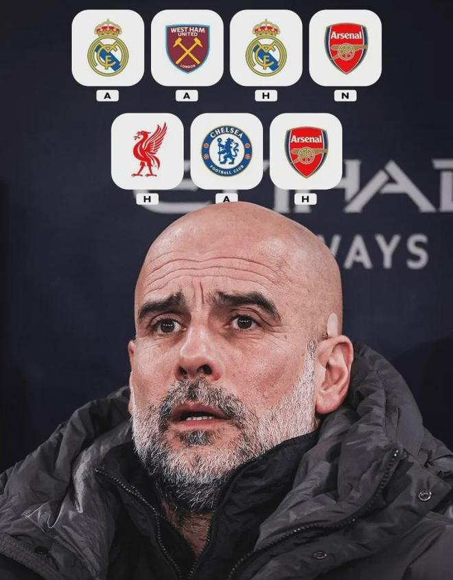 赛季来到冲刺阶段,曼城迎来一波魔鬼赛程。打完西汉姆联的这场英超联赛后,曼城还有跟皇马的欧冠16强战第二回合、联赛杯决赛打阿森纳、足总杯8强战面对利物浦,以及联赛面对切尔西和跟阿森纳的天王山之战。